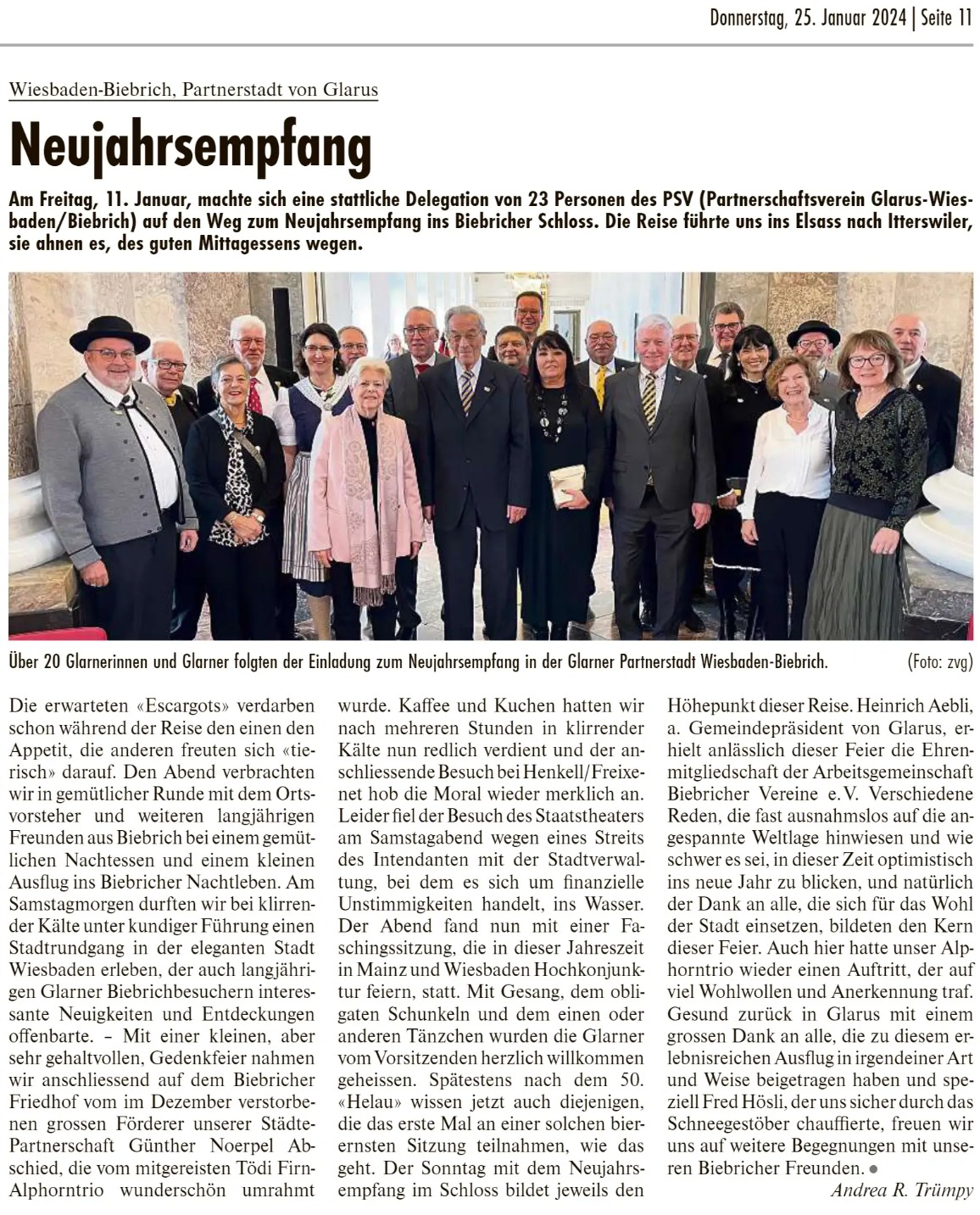 Fridolin 25.01.2024: Neujahrsempfang in Wiesbaden-Biebrich, Partnerstadt von Glarus