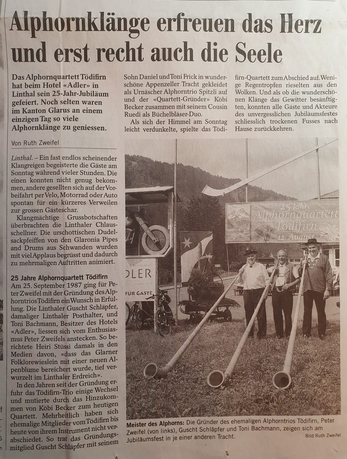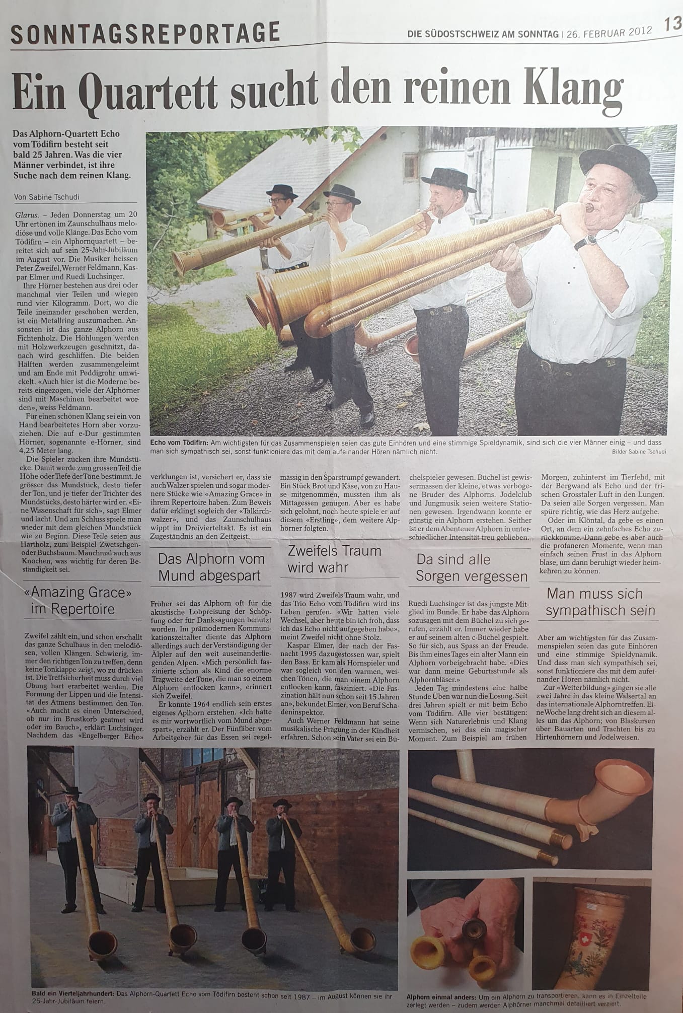 Südostschweiz 16.08.2012: Alphornklänge erfreuen das Herz und erst recht auch die Seele